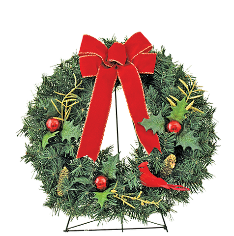 A - Holiday Memorial Wreath with Red Bow & Cardinal